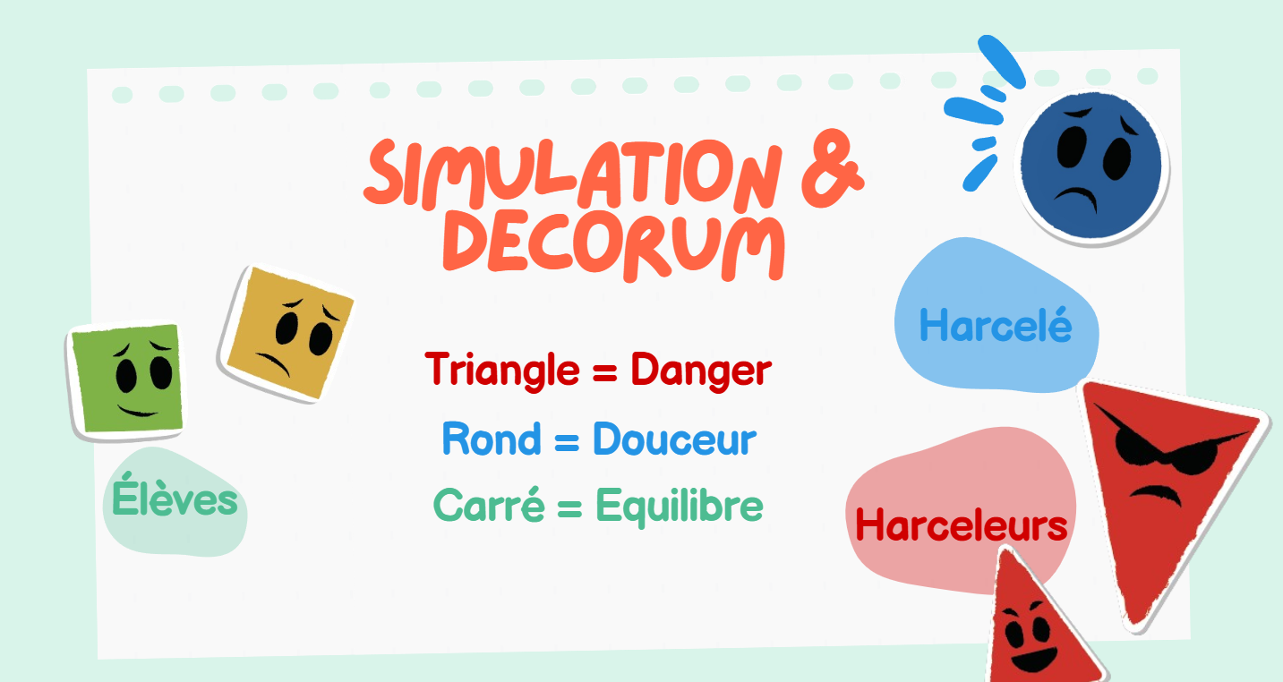 Jeu de role éducatif, qui utilise les formes géométriques pour traiter d'un sujet important : l'harcèlement scolaire.